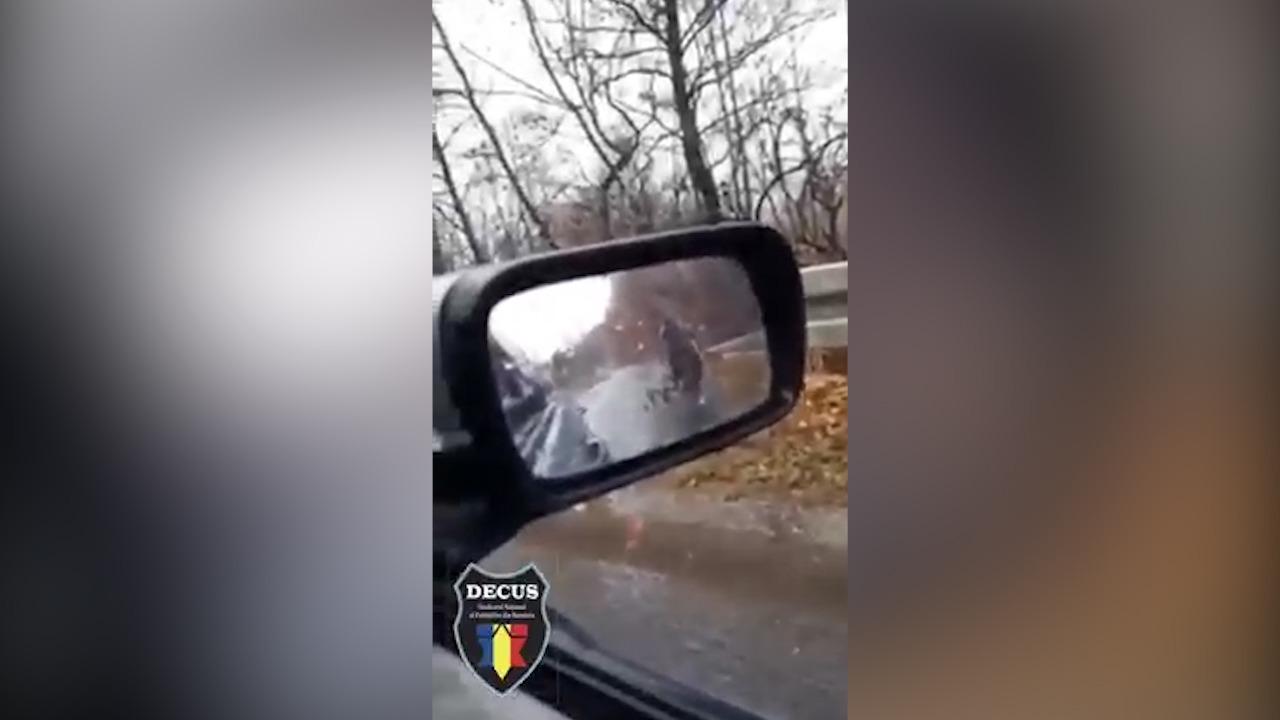 Imaginea durerii: O bătrânică din Maramureş, surprinsă cărând pe ploaie şi frig un buştean spre casă ca să aibă cu ce să se încălzească