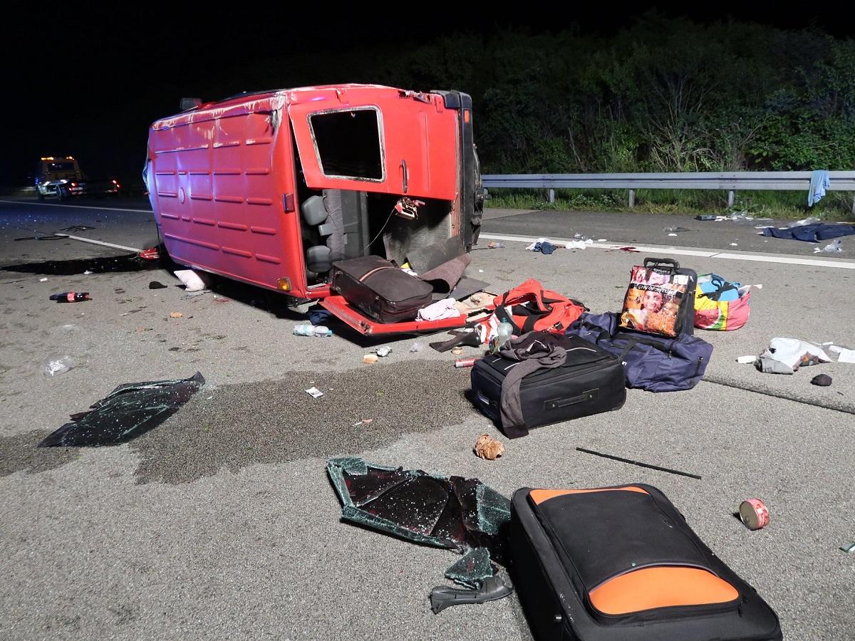 Imagini sfâșietoare de la microbuzul cu 10 români răsturnat în Germania: pantofi, mâncare și bagaje s-au împrăștiat pe șosea | Imaginea 2 din 9 | Galerie Foto