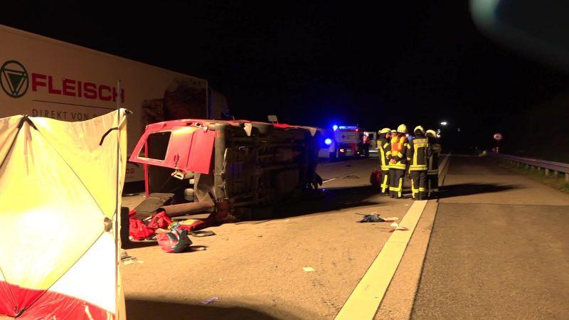 Imagini sfâșietoare de la microbuzul cu 10 români răsturnat în Germania: pantofi, mâncare și bagaje s-au împrăștiat pe șosea | Imaginea 7 din 9 | Galerie Foto