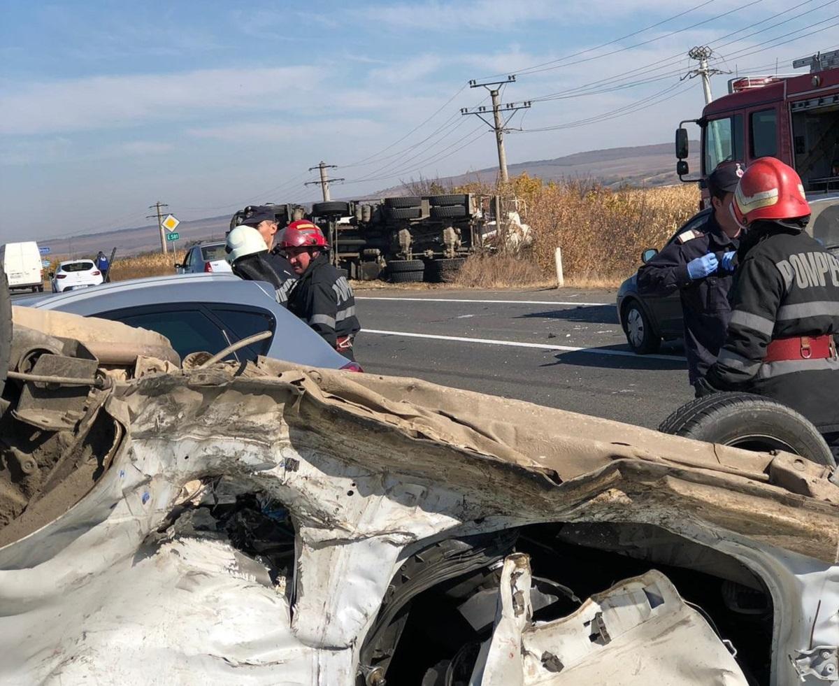 Primele imagini de la accidentul din Vaslui, unde o betonieră şi două maşini s-au făcut praf. 7 victime, trei încarcerate