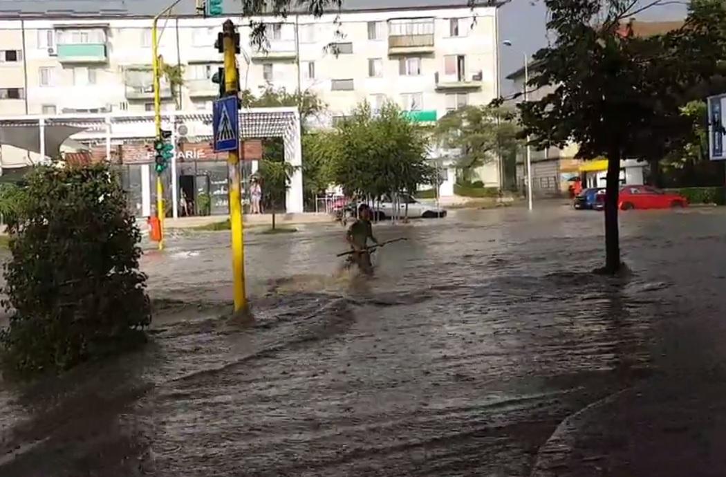 IMAGINI DRAMATICE la Tulcea! Un sfert de oră de POTOP şi apa a luat maşinile de pe stradă! VIDEO