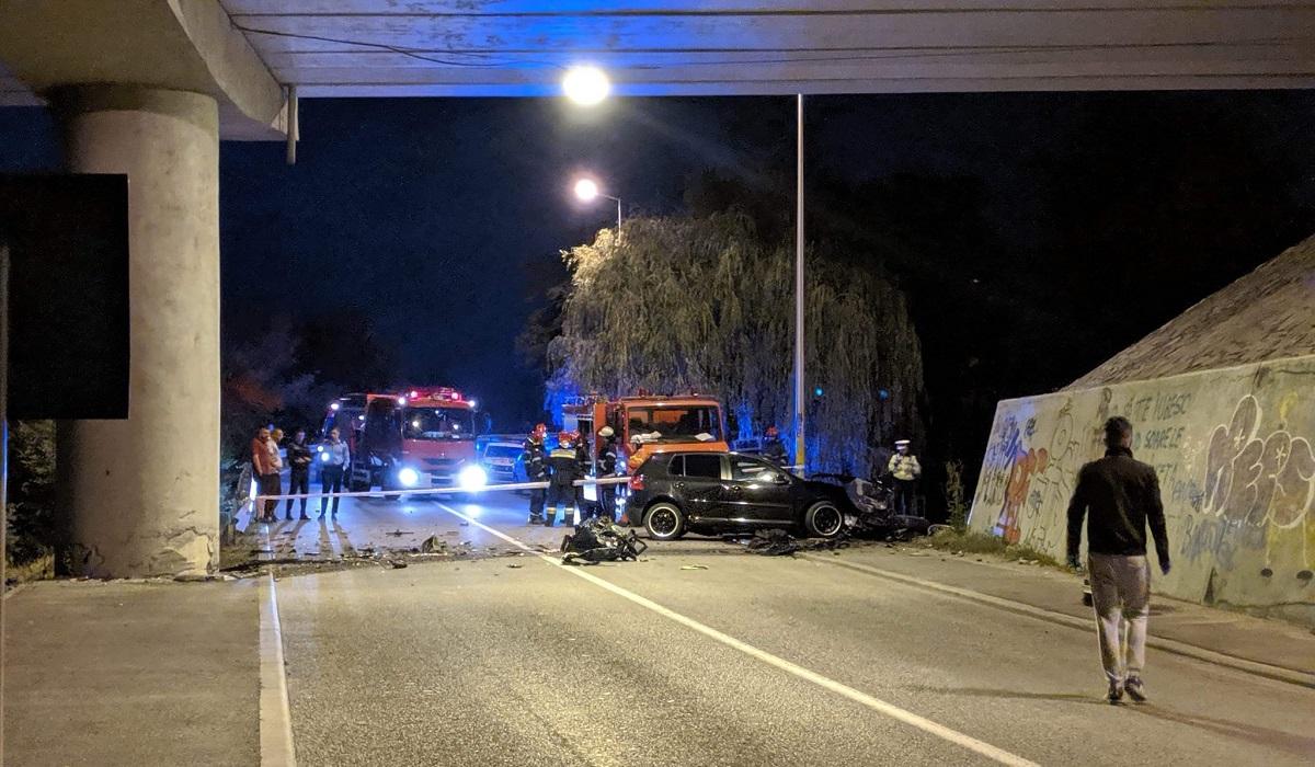 Imagini cumplite la Bistriţa, unde un tânăr de 20 de ani a intrat cu maşina într-o pasarelă de beton