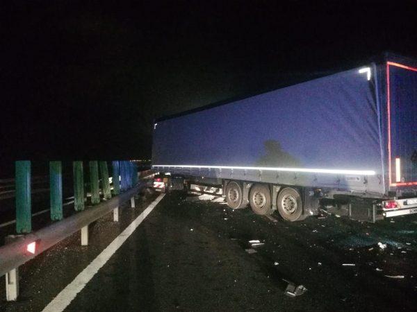 Imagini cumplite pe autostradă, la Nădlac. Un şofer de TIR e în comă, cabina strivită de alt camion