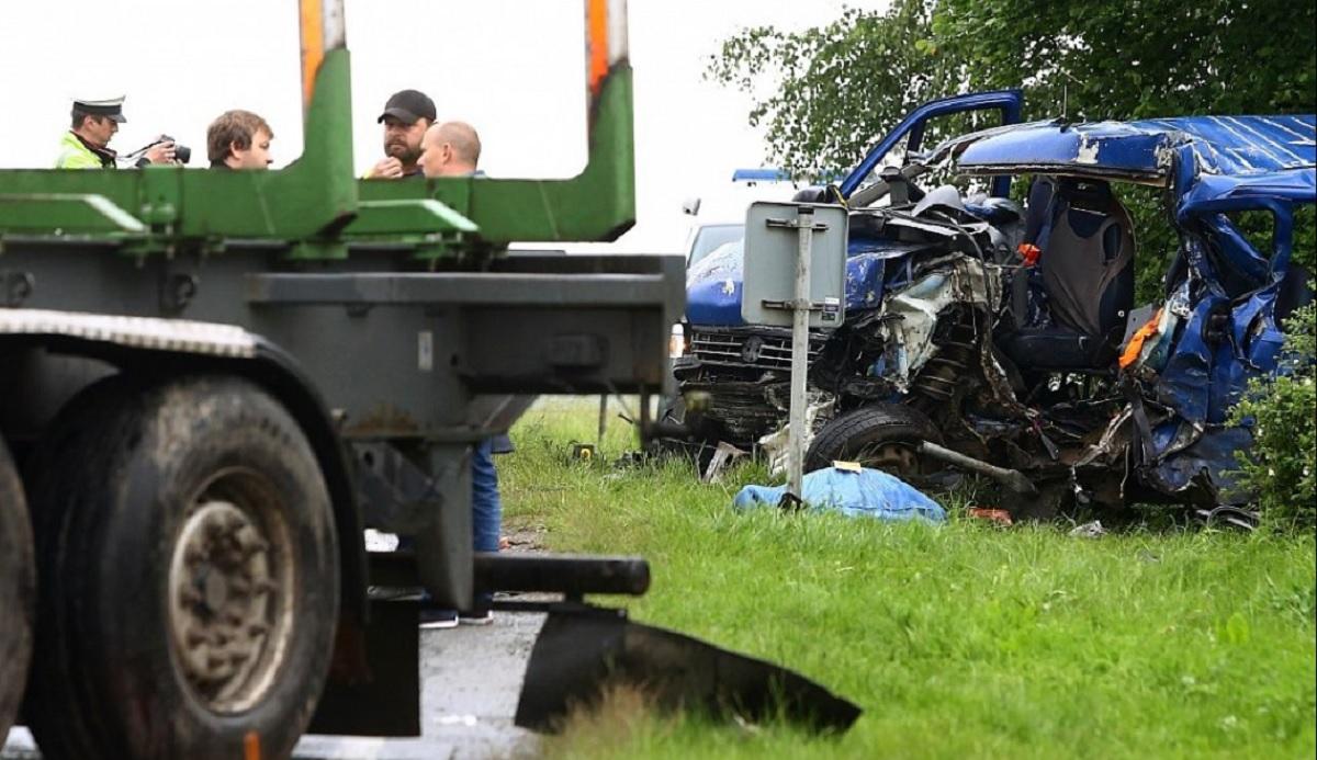 Imagini cumplite cu microbuzul în care erau 8 români și care a fost făcut praf de semiremorca unui TIR (video)