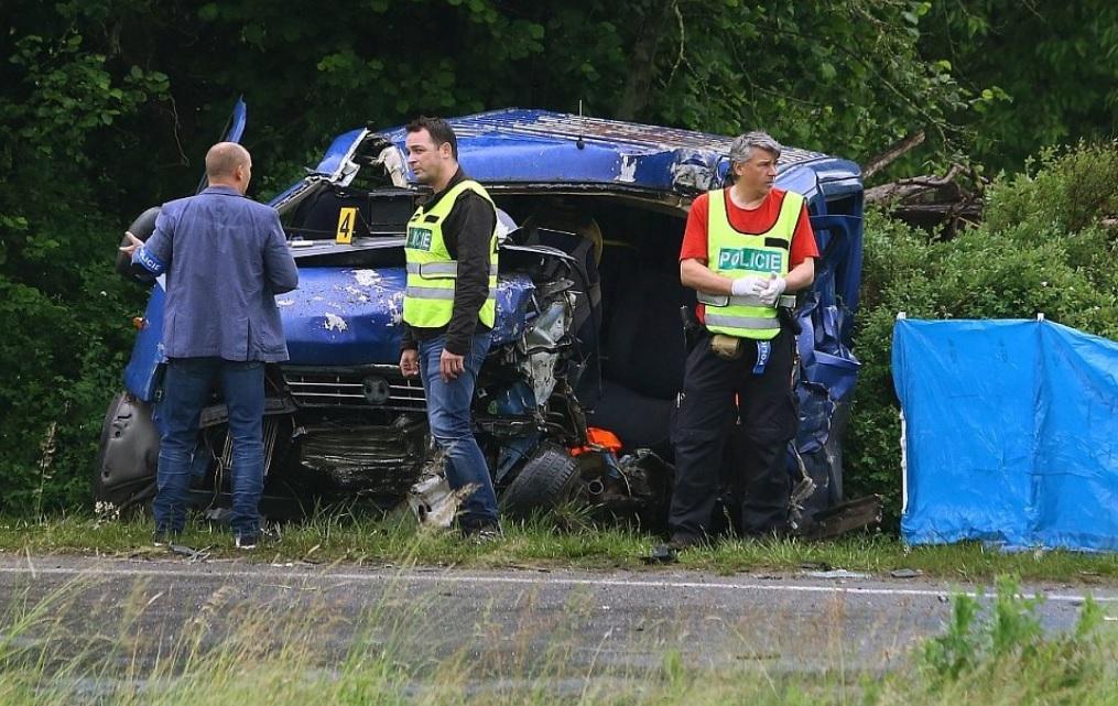 Imagini cumplite cu microbuzul în care erau 8 români și care a fost făcut praf de semiremorca unui TIR (video)