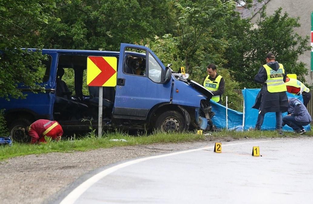 Imagini cumplite cu microbuzul în care erau 8 români și care a fost făcut praf de semiremorca unui TIR (video)