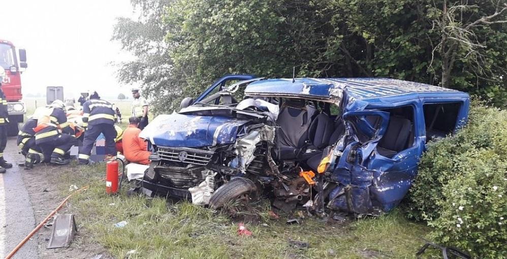 Imagini cumplite cu microbuzul în care erau 8 români și care a fost făcut praf de semiremorca unui TIR (video)
