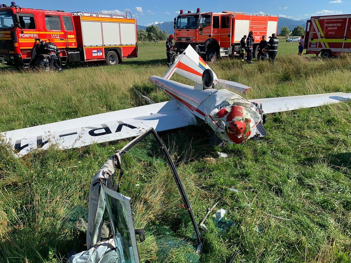Imagini cumplite cu planorul prăbuşit la Sânpetru. Pilotul are 23 de ani şi a suferit o fractură de coloană cervicală
