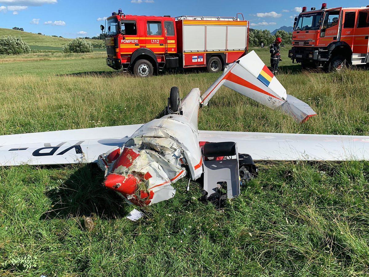 Imagini cumplite cu planorul prăbuşit la Sânpetru. Pilotul are 23 de ani şi a suferit o fractură de coloană cervicală
