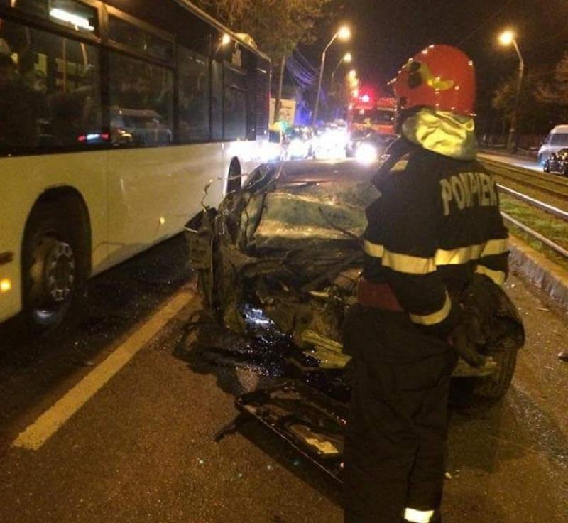 IMAGINI de GROAZĂ în Bucureşti! După o cursă nebună printre mașini, un șofer a intrat într-un STÂLP și a făcut praf automobilul