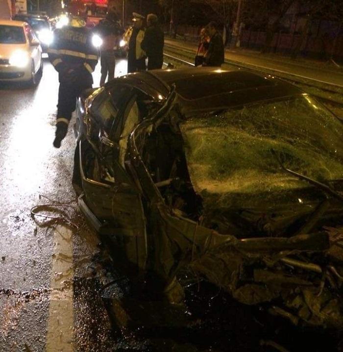 IMAGINI de GROAZĂ în Bucureşti! După o cursă nebună printre mașini, un șofer a intrat într-un STÂLP și a făcut praf automobilul