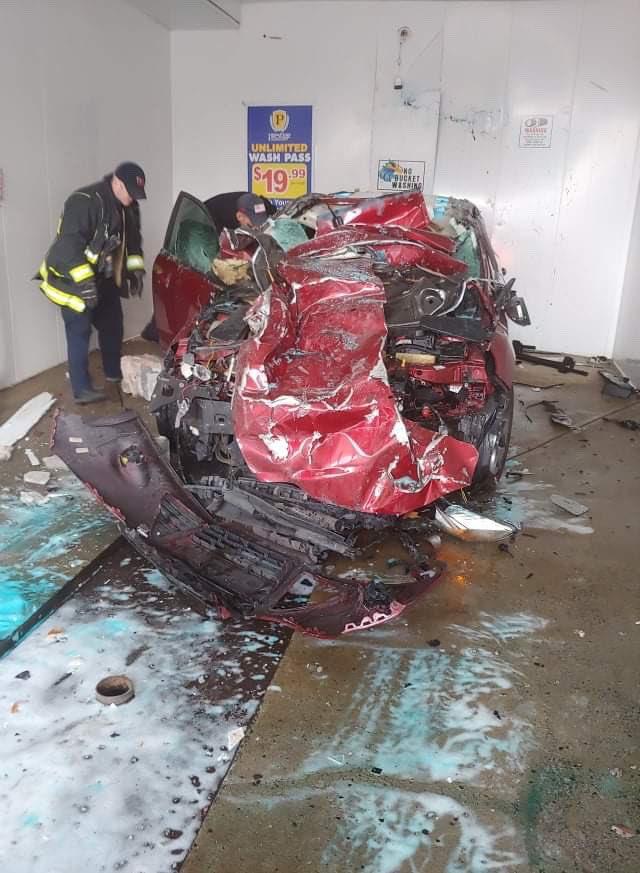 Imagini de groază într-o spălătorie auto, maşină strivită de o camionetă, totul a fost filmat (video)