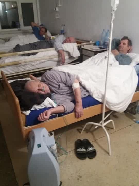 Unul dintre pacienții care stau câte doi în pat la Spitalul din Bârlad avea perfuzii | Sursa foto: Facebook/Telu Gorbanescu