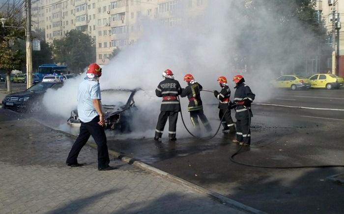 IMAGINI dramatice! O mașină A LUAT FOC în trafic, la Constanța
