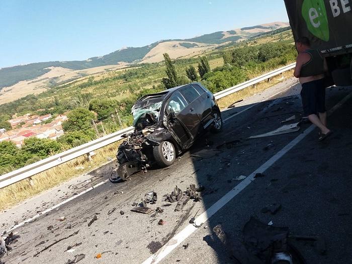 IMAGINI DRAMATICE! O șoferiță a intrat pe contrasens și a fost lovită ÎN PLIN de un tir, pe DN6, în Caraş-Severin. Femeia a murit pe loc