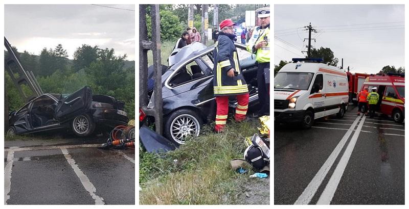 Imagini dramatice pe Valea Oltului! Un șofer de 20 de ani s-a izbit cu BMW-ul de un stâlp și și-a ucis un prieten. Victima avea 25 de ani. Două persoane au ajuns la spital