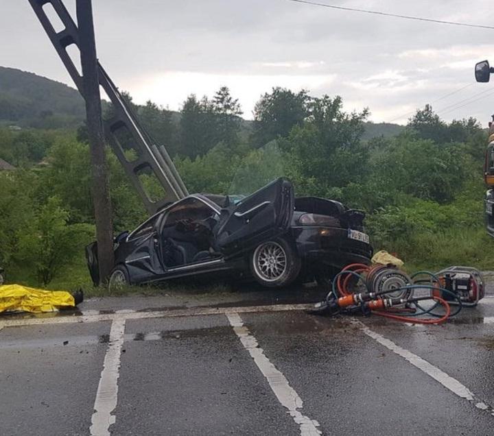 Imagini dramatice pe Valea Oltului! Un șofer de 20 de ani s-a izbit cu BMW-ul de un stâlp și și-a ucis un prieten. Victima avea 25 de ani. Două persoane au ajuns la spital