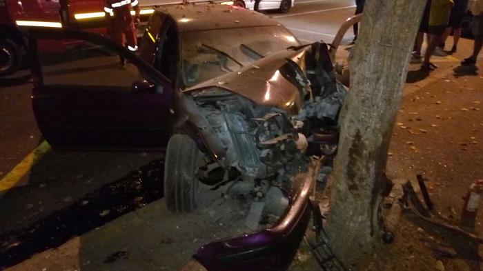 IMAGINI dramatice! Un șofer, cadru militar, s-a izbit VIOLENT de un copac, la Constanța. Trei persoane au ajuns la spital (VIDEO)