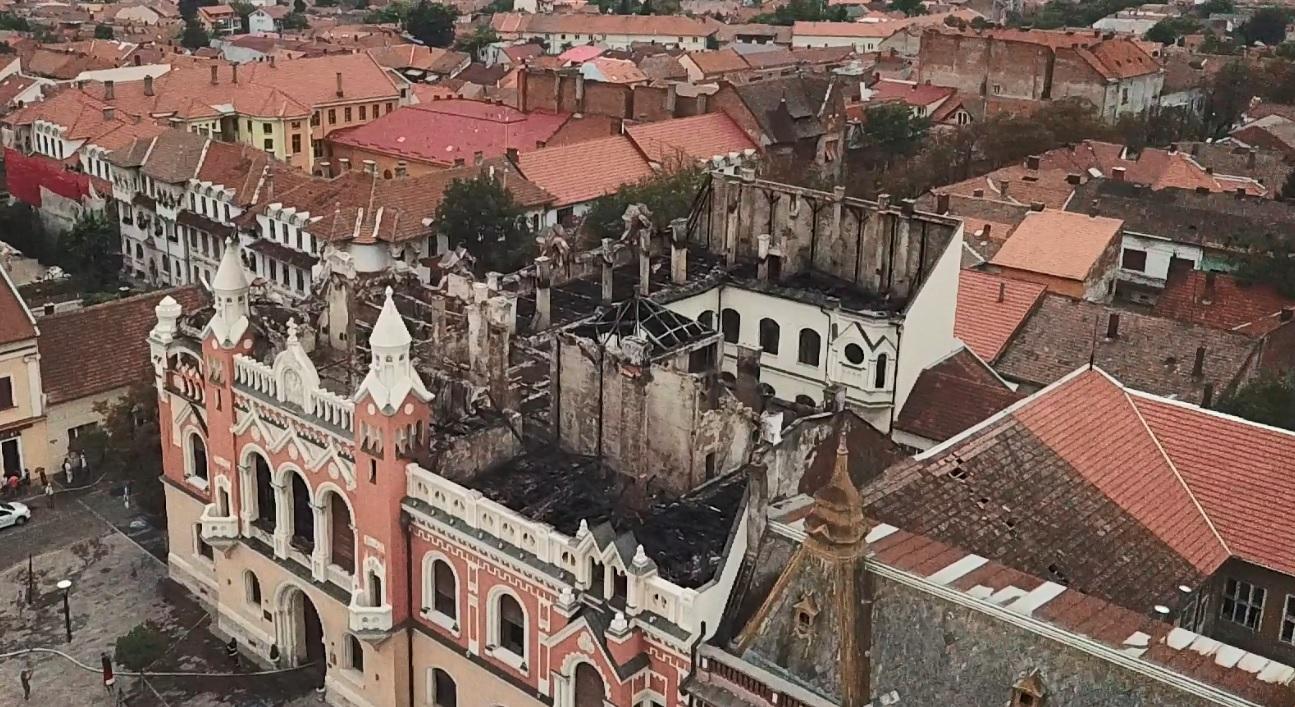 Imaginile dezastrului din Oradea, filmate cu drona. Cum se vede pe zi Palatul Episcopal, după incendiul devastator (Video)