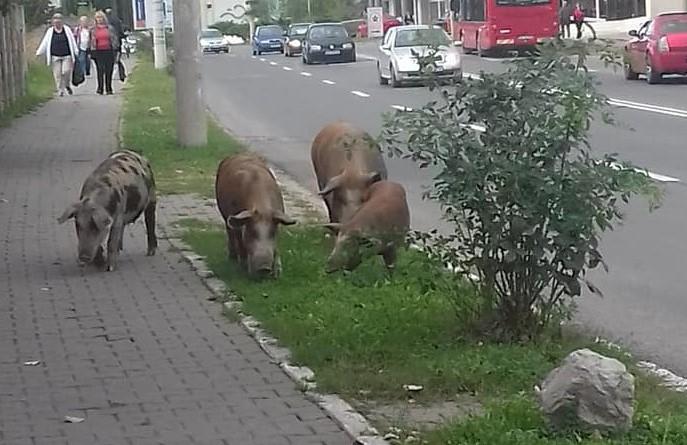 Imagini HALUCINANTE în Alba. Oraşul, invadat din nou de PORCI. Animalele umblă libere pe stradă sau provoacă haos printre şoferi (VIDEO)