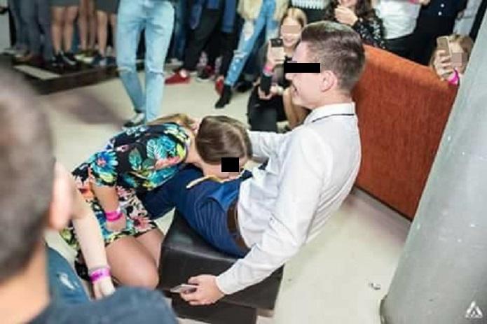 Imagini HALUCINANTE la un bal al bobocilor din Cluj. Tinerele şi-au demonstrat talentul la înghiţit banane, legate la ochi, din poala băieţilor