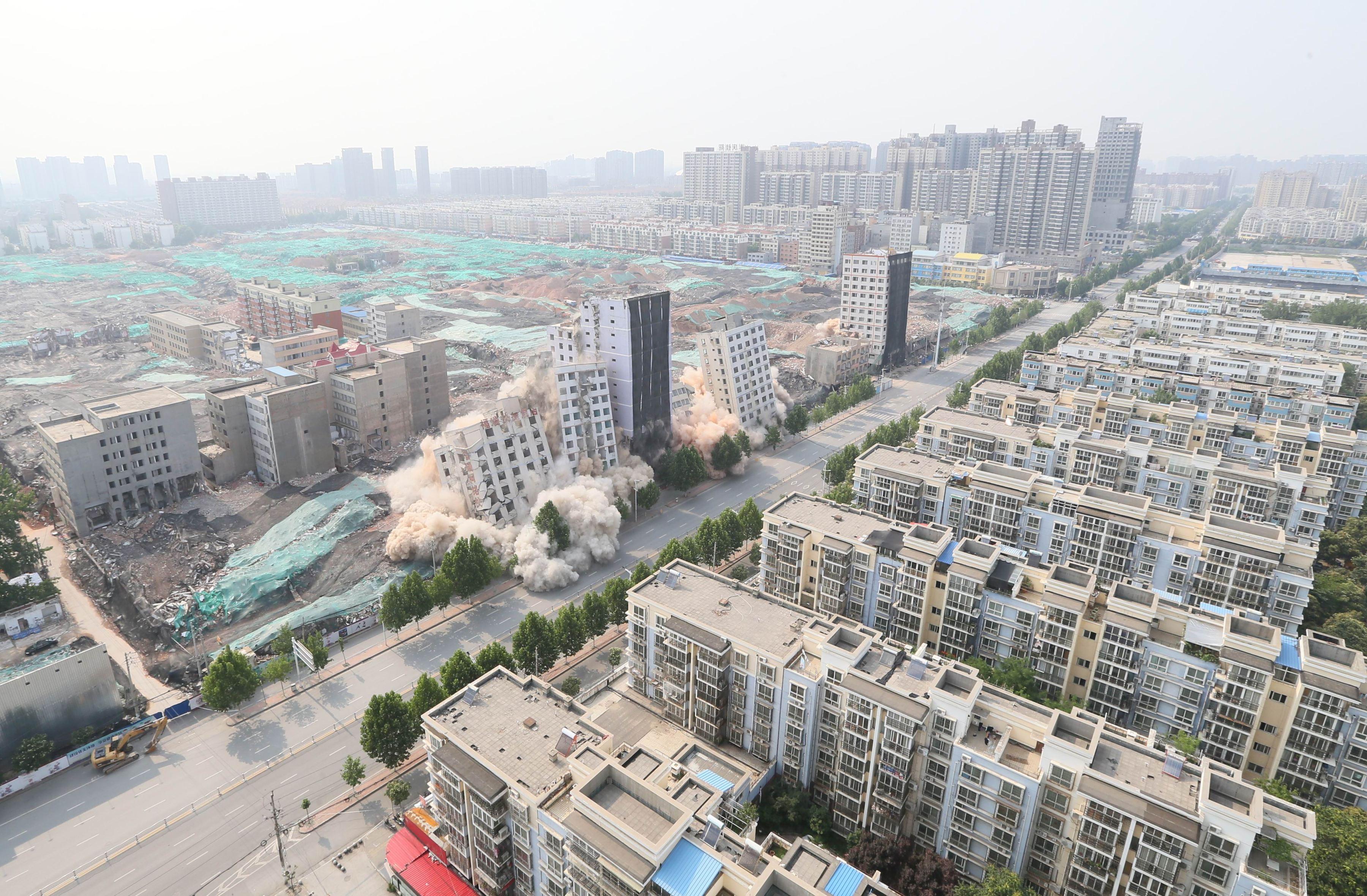 Imagini impresionante! Şase clădiri, DEMOLATE concomitent în doar câteva secunde (GALERIE FOTO)