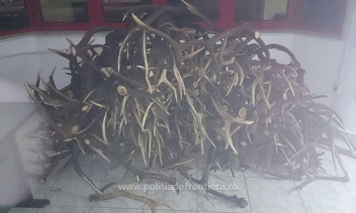 IMAGINI INCREDIBILE! Un cetăţean străin a încercat să scoată din ţară 680 de COARNE DE CERB. Poliţiştii au fost şocaţi