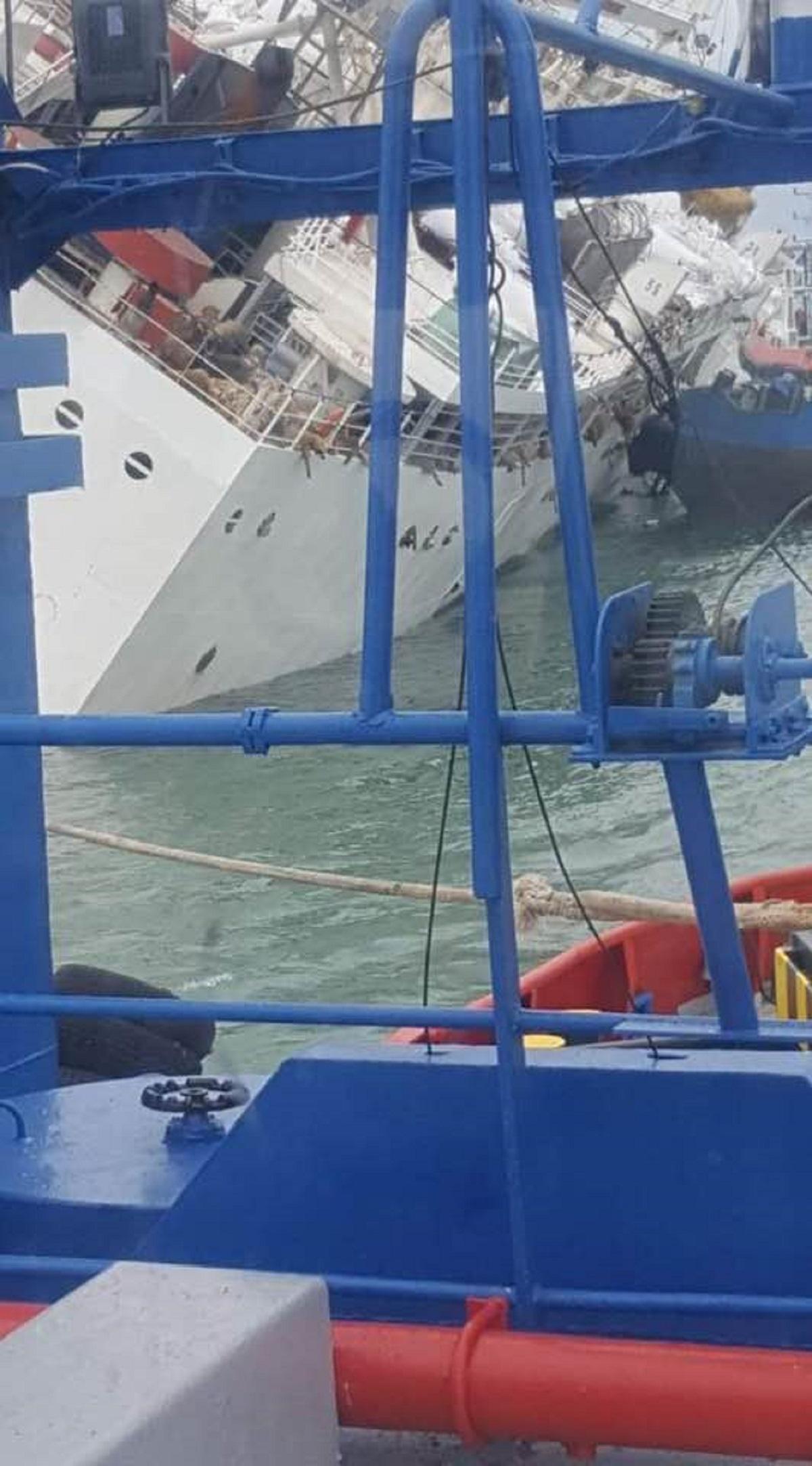 Imagini dramatice cu nava aproape scufundată în Portul Midia | Sursa foto: Laurentiu Mironescu / Faceook