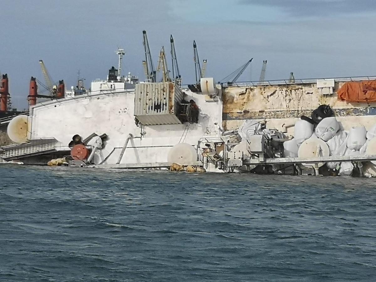 Imagini dramatice cu nava aproape scufundată în Portul Midia
