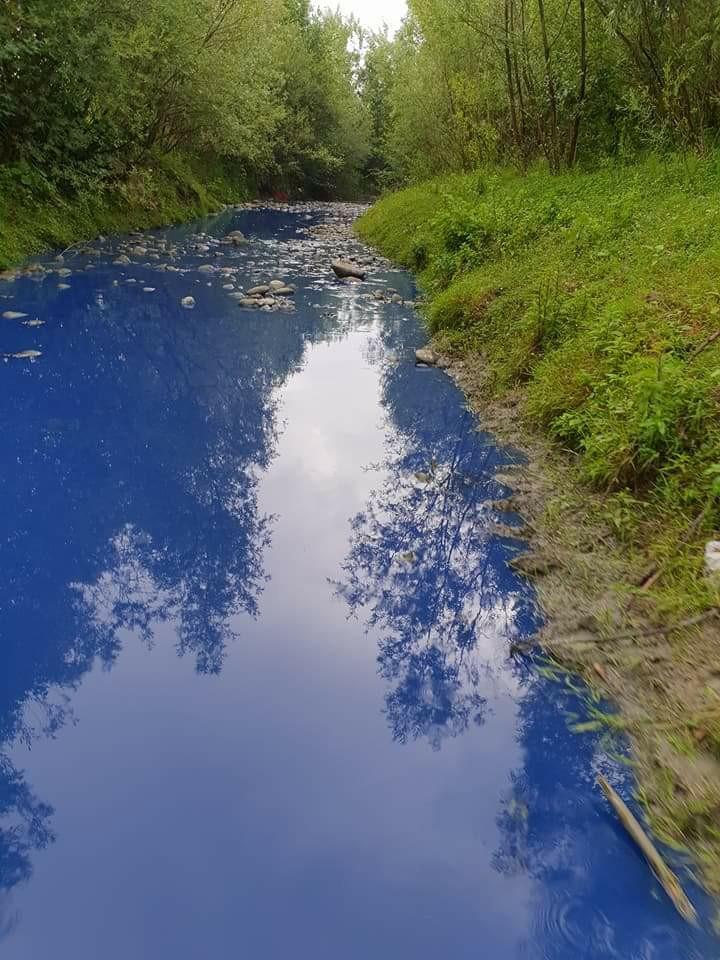 Imagini cu un pârâu colorat în albastru, într-un sat din Dâmboviţa, surprinse de un localnic. "Cine oare este vinovat? Nu se sesizează nimeni?" (Video)
