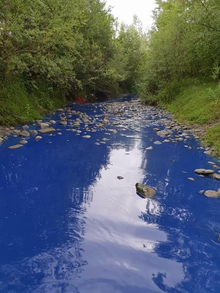 Imagini cu un pârâu colorat în albastru, într-un sat din Dâmboviţa, surprinse de un localnic. "Cine oare este vinovat? Nu se sesizează nimeni?" (Video)