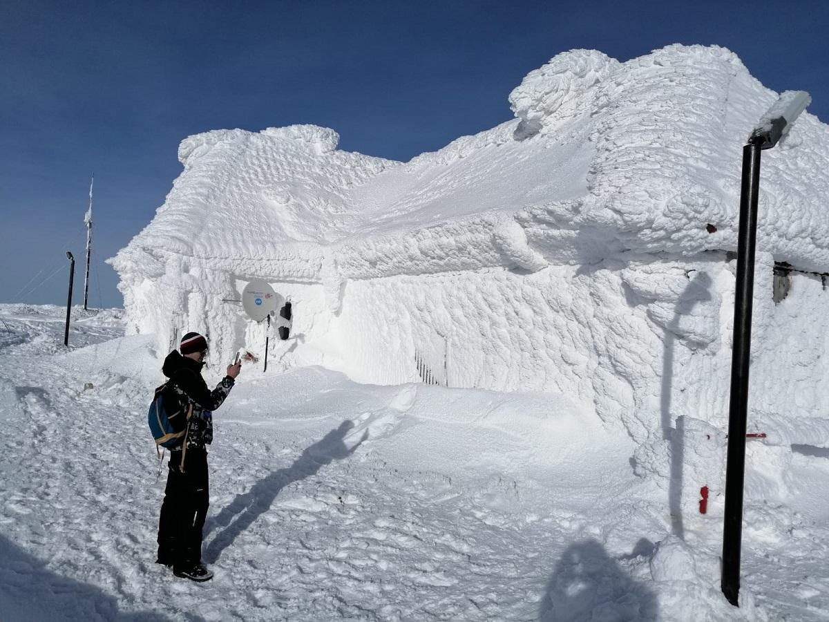 Imagini spectaculoase pe vârful Vlădeasa. Staţia meteo a îngheţat complet, oamenii spun că nu au mai văzut atâta zăpadă (Video)