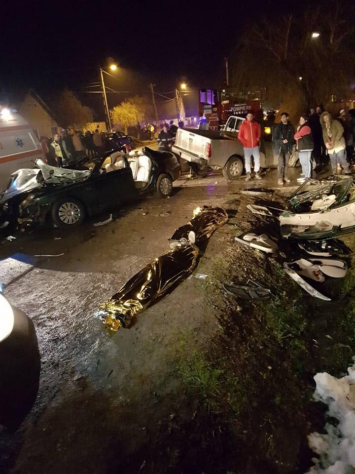 IMAGINI TERIBILE de la un accident rutier, în Arad: 2 tineri morți, 6 răniți grav, după ciocnirea frontală a două mașini