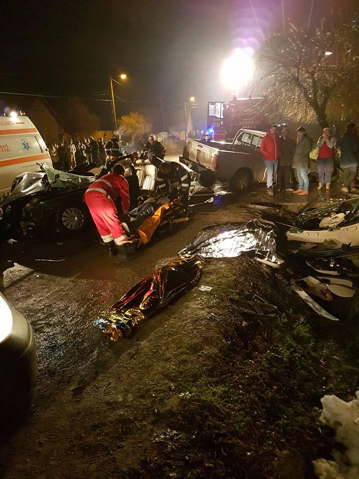 IMAGINI TERIBILE de la un accident rutier, în Arad: 2 tineri morți, 6 răniți grav, după ciocnirea frontală a două mașini
