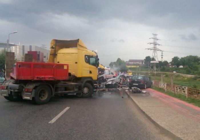 Imagini teribile la Iaşi, unde un fost colonel de poliţie a murit pe loc, maşina condusă de el fiind izibtă de un TIR intrat pe contrasens (video)