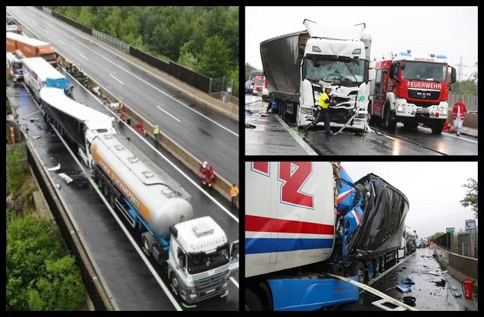 Impact devastator între trei TIR-uri, pe o autostradă din Austria. Unul dintre şoferi a murit pe loc. Imagini de groază de la locul accidentului | Imaginea 1 din 6 | Galerie Foto