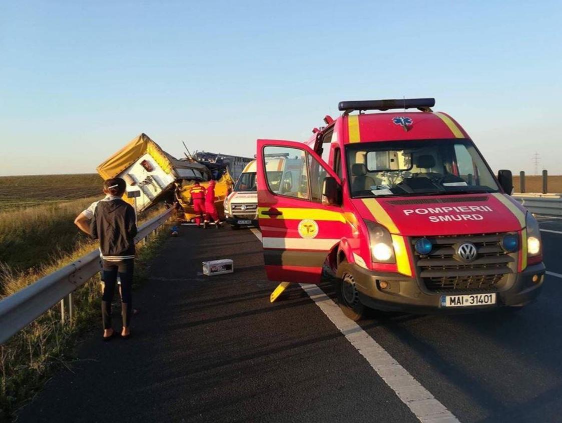 IMPACT FRONTAL DEVASTATOR între două TIR-uri, pe autostrada Arad-Timișoara! Ambii şoferi SUNT MORŢI. Traficul este blocat (GALERIE FOTO + VIDEO)