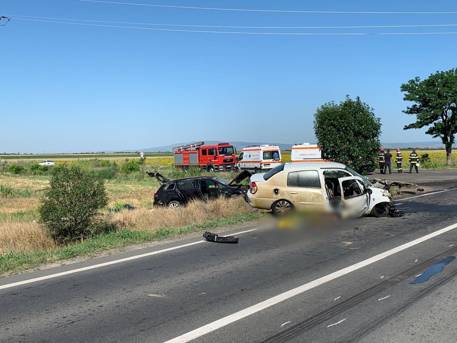 Impact violent în Buzău, soldat cu doi morţi şi rănirea ambilor şoferi. Bucăţi din caroserie au sărit într-o a treia maşină