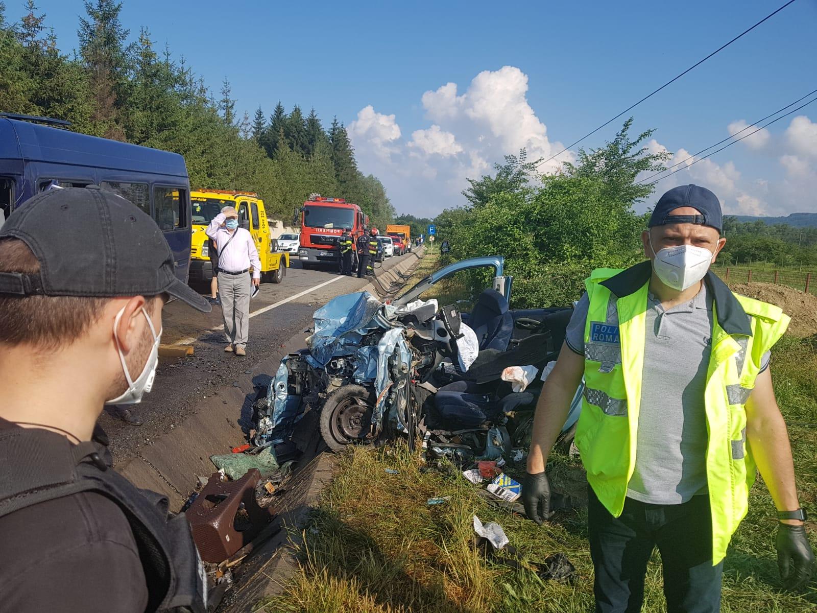 Impactul frontal în care au murit doi șoferi, în Vrancea, surprins de camere. Amândouă mașinile au intrat pe contrasens (video)