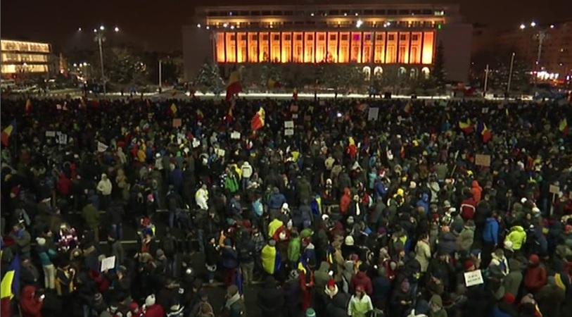LIVE VIDEO. În Piaţa Victoriei au început să se adune protestatarii. La ora 21.00, manifestanţii vor să creeze "cel mai mare tricolor uman"