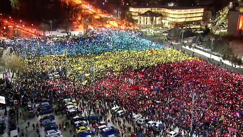LIVE VIDEO. Numărul manifestanţilor din Piaţa Victoriei depășește 10.000. Manifestanţii au făcut un TRICOLOR UMAN!