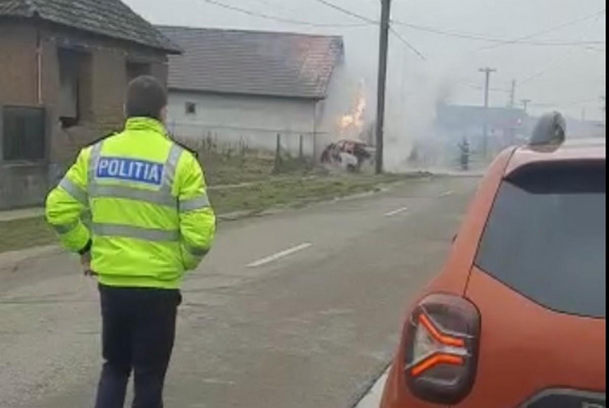 Incendiu de proporții în Satu Mare, după ce o camionetă cu butelii s-a înfipt într-o casă. În impact a spart o ţeavă de gaz