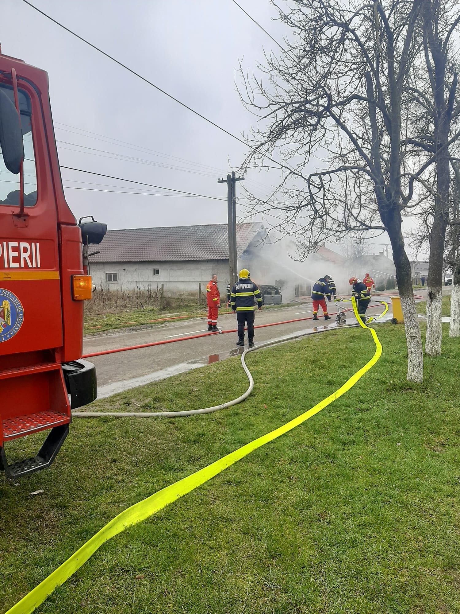 Incendiu de proporții în Satu Mare, după ce o camionetă cu butelii s-a înfipt într-o casă. În impact a spart o ţeavă de gaz