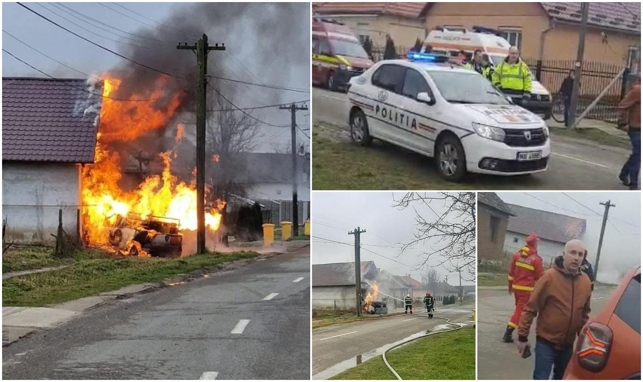 Incendiu de proporții în Satu Mare, după ce o camionetă cu butelii s-a înfipt într-o casă. În impact a spart o ţeavă de gaz | Imaginea 2 din 9 | Galerie Foto