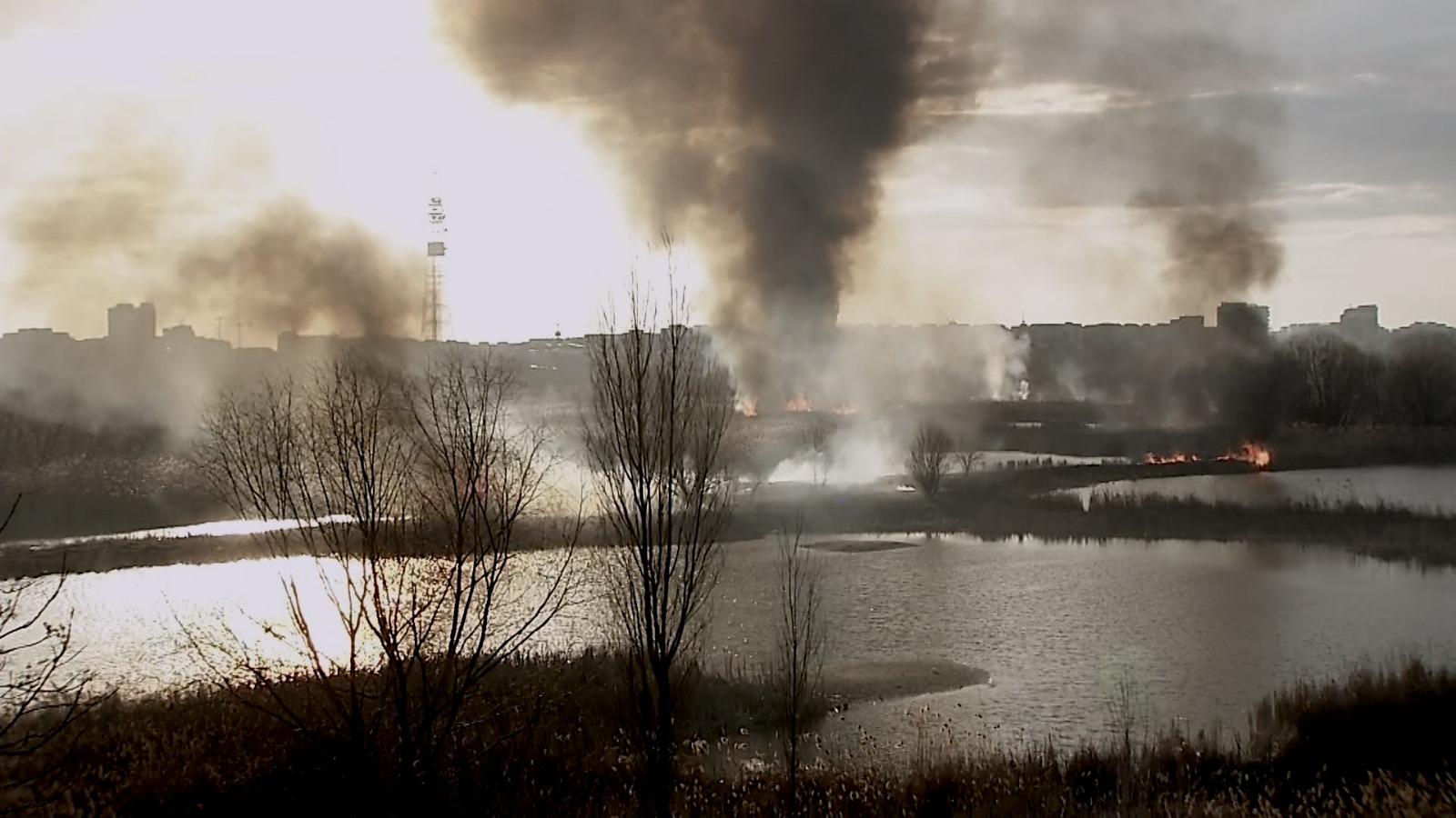 Incendiu devastator în Delta Văcăreşti. Şase hectare de vegetaţie s-au făcut scrum, iar fumul dens s-a întins pe kilometri distanţă