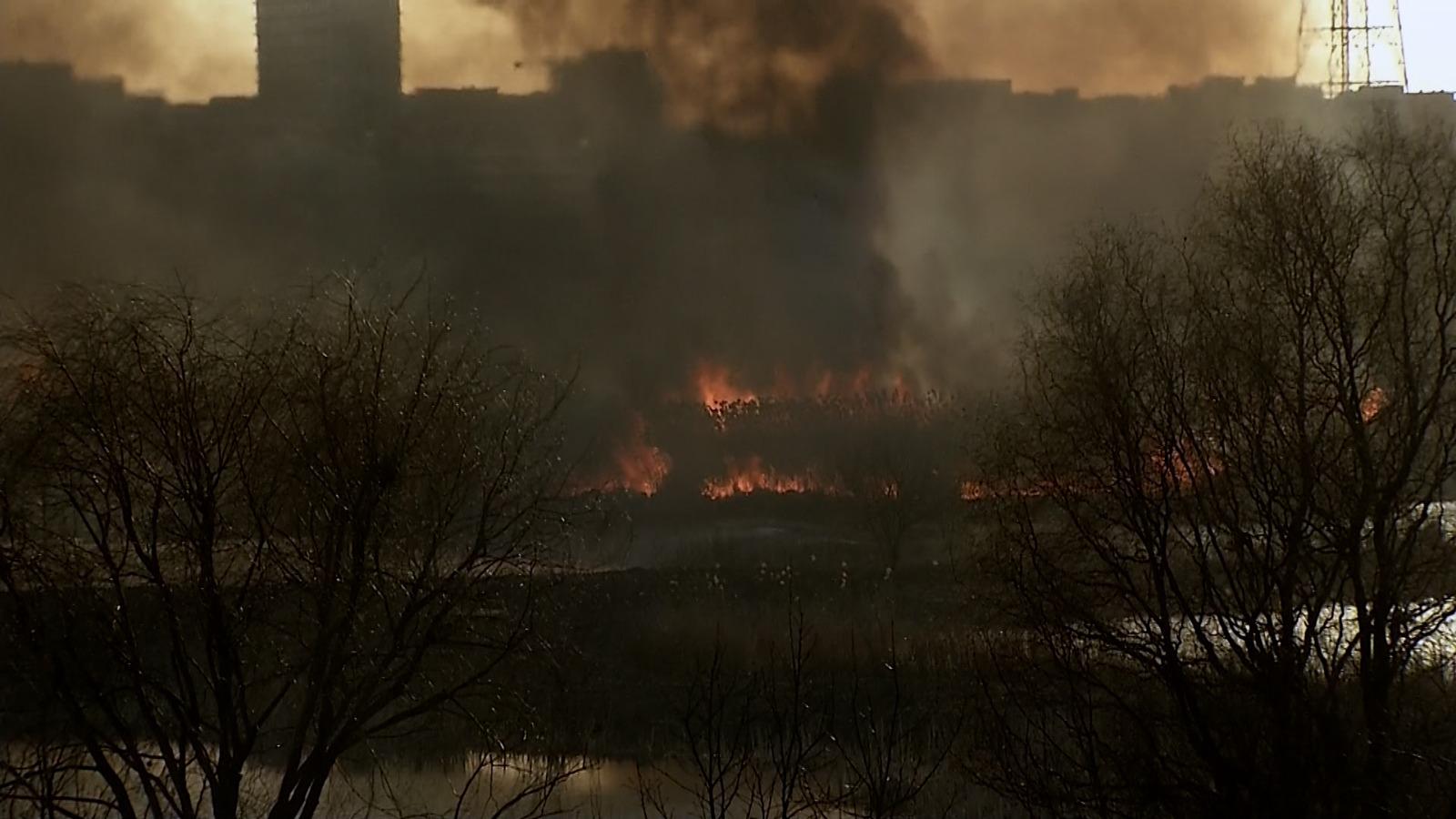 Incendiu devastator în Delta Văcăreşti. Şase hectare de vegetaţie s-au făcut scrum, iar fumul dens s-a întins pe kilometri distanţă | Imaginea 8 din 11 | Galerie Foto
