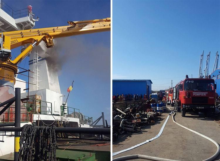 Stare de alertă în Portul Constanţa! O macara plutitoare a fost cuprinsă de flăcări, pompierii intervin cu GAZ INERT - FOTO