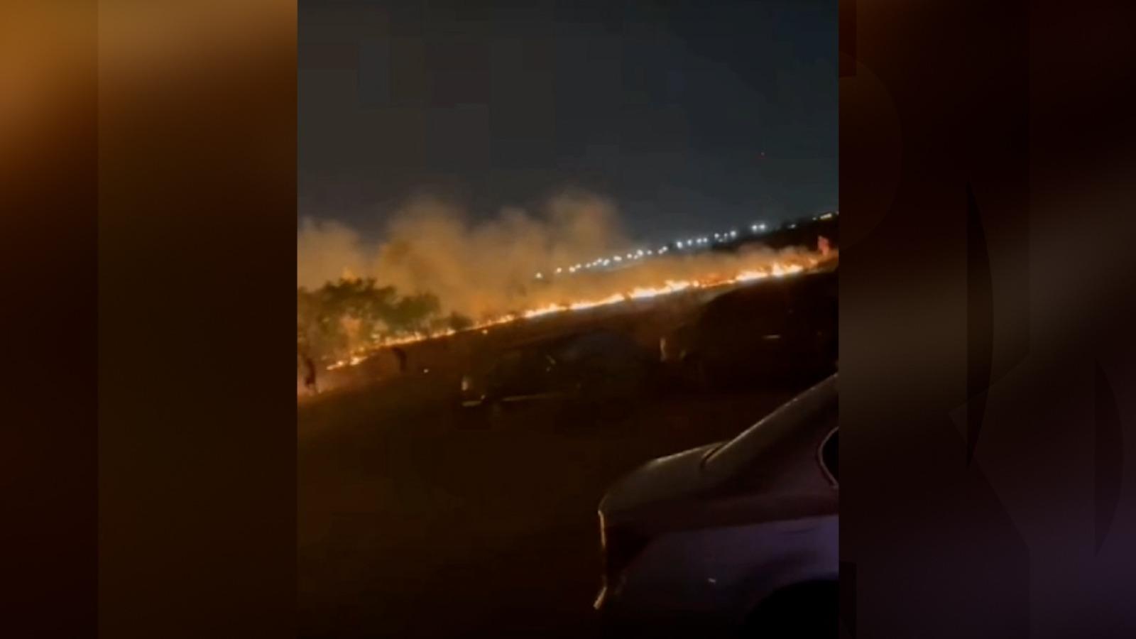 Incendiu puternic de vegetaţie în Rahova, flăcările au cuprins şi o maşină. Pompierii au intervenit cu 7 autospeciale