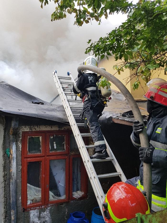 Incendiu puternic la o casă din Bucureşti, o persoană a fost scoasă din flăcări şi dusă la Floreasca
