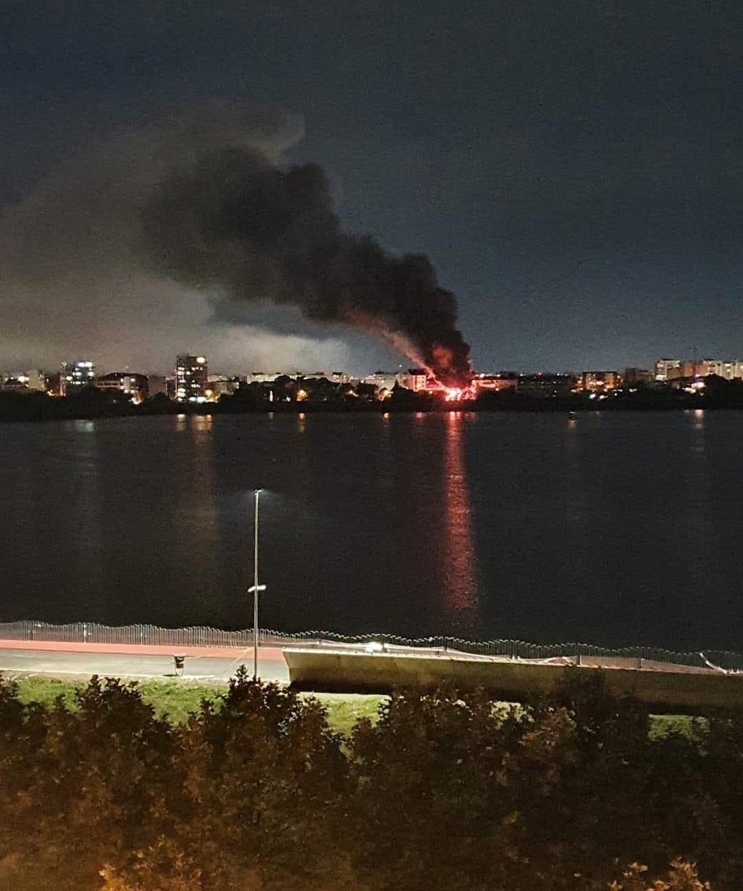 Incendiu puternic la un service auto din Bucureşti. Fumul dens, vizibil de la câţiva kilometri distanţă